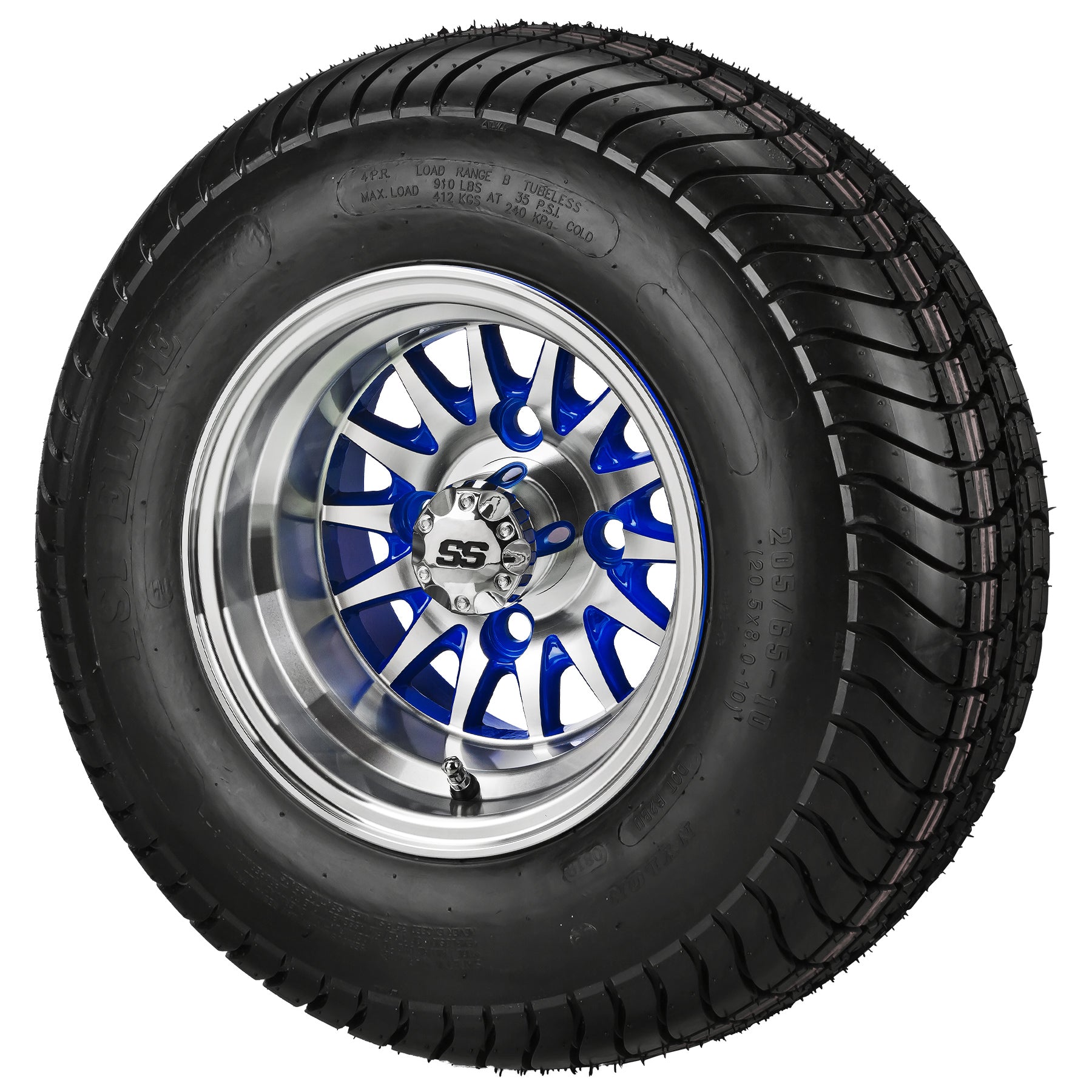 LSI 10' 14-Spoke Blue & Machined Wheel and Low Profile Tire Combo