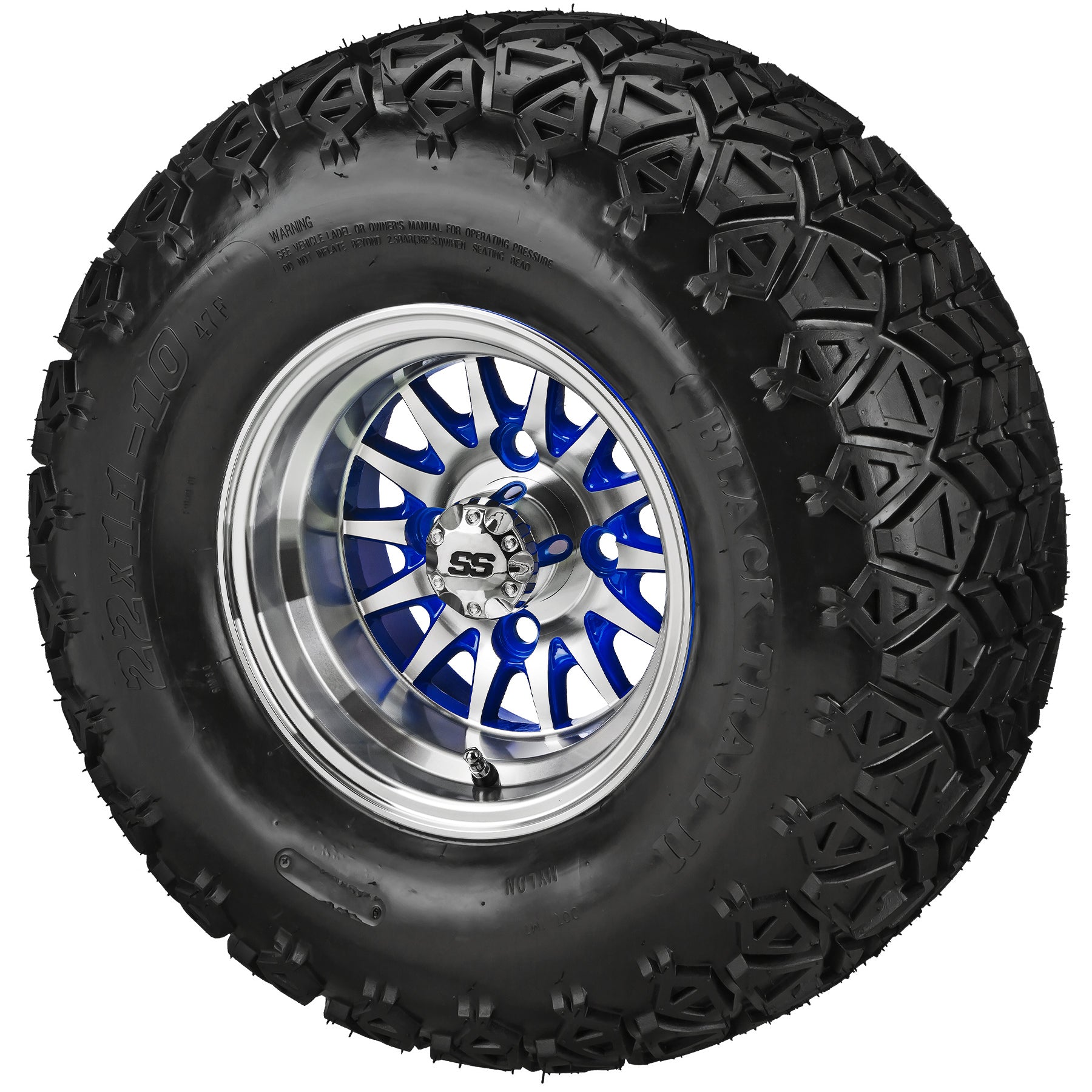 LSI 10' 14-Spoke Blue & Machined Wheel and Lifted Tire Combo