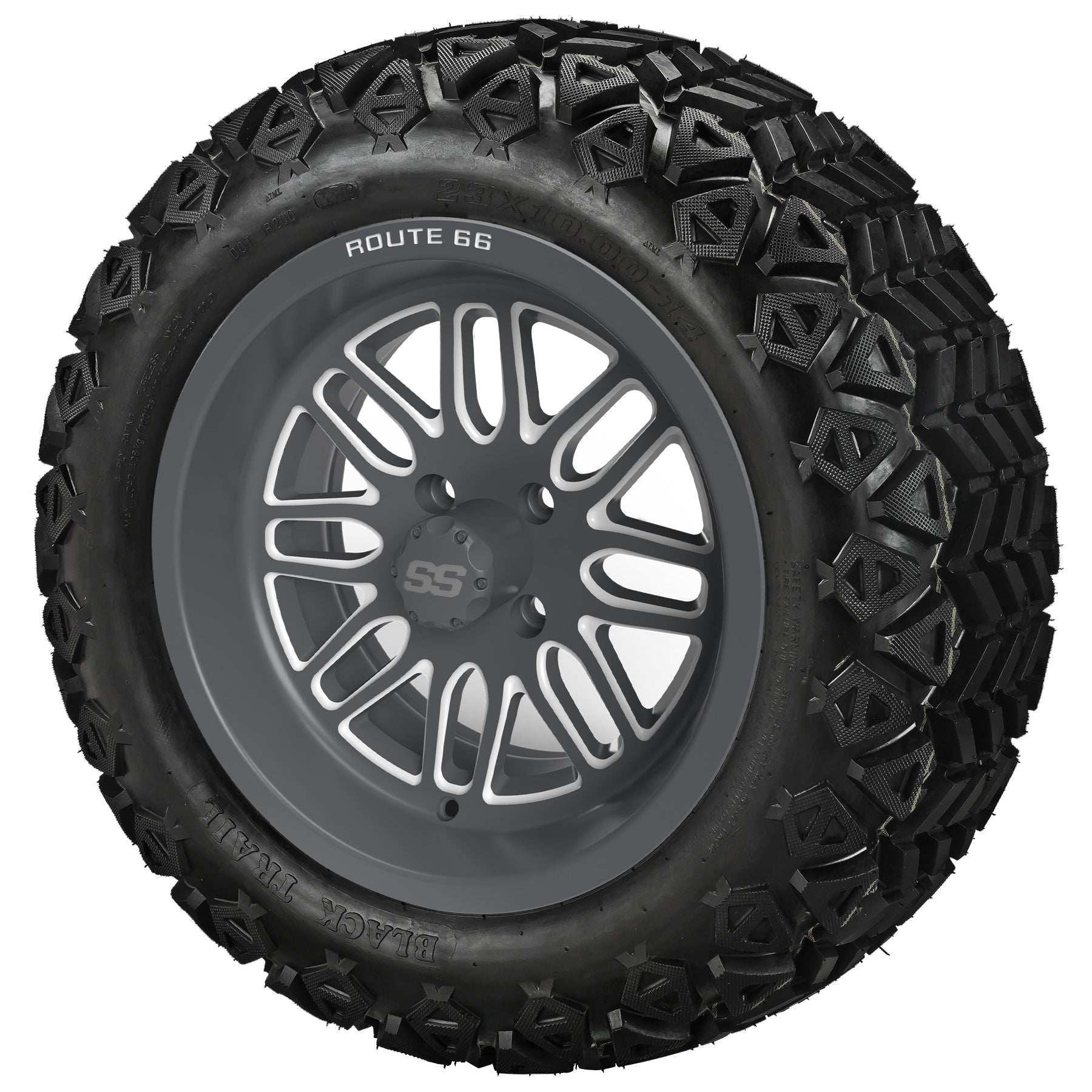 LSI 14' Sinister Gun Metal Gray & Machined Wheel and Lifted Tire Combo