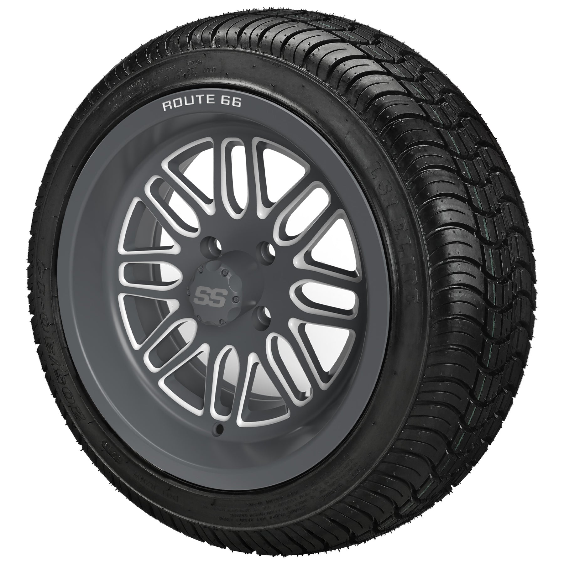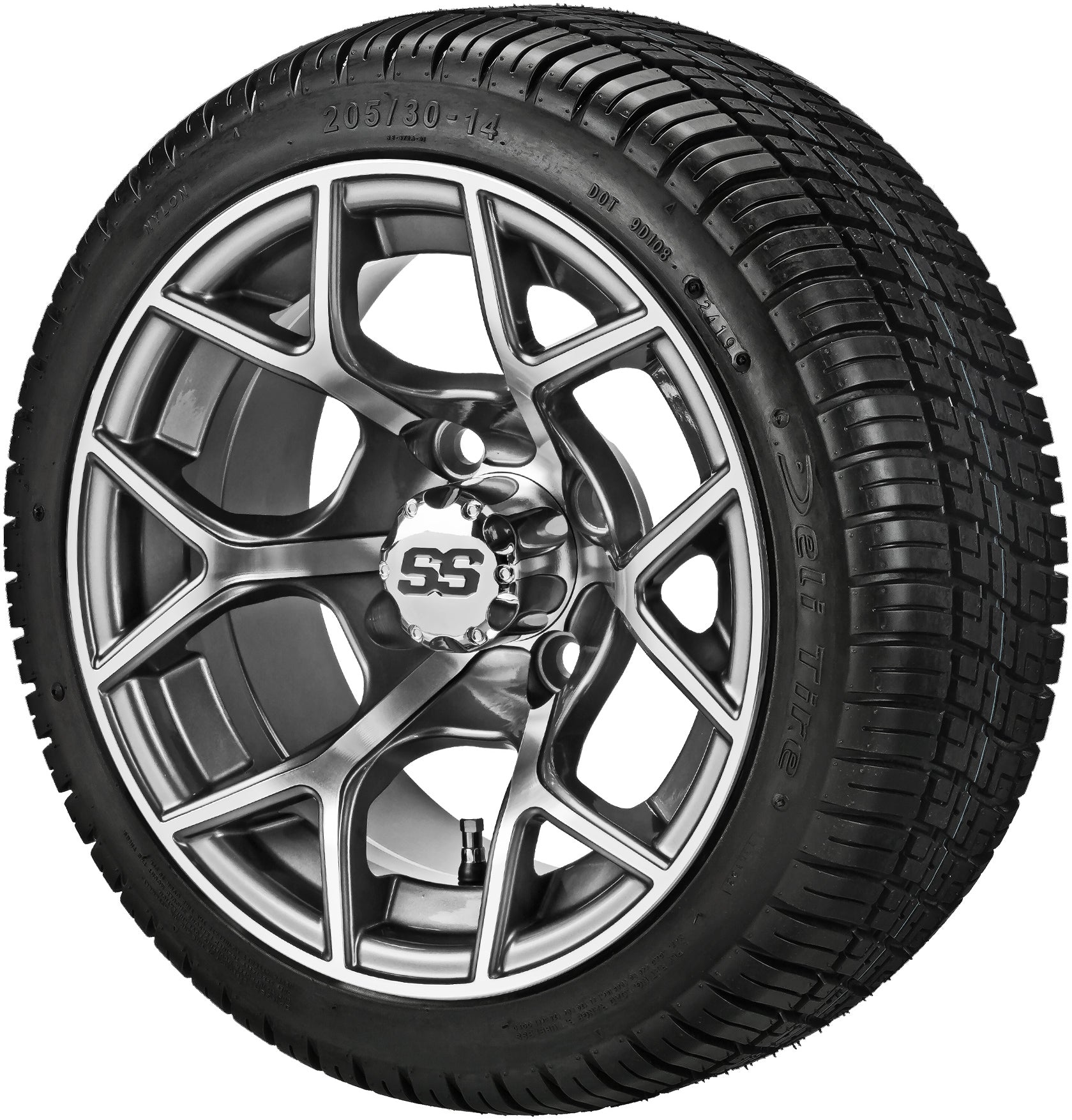 LSI 14' Sinister Gun Metal Gray & Machined Wheel and Low Profile Tire Combo