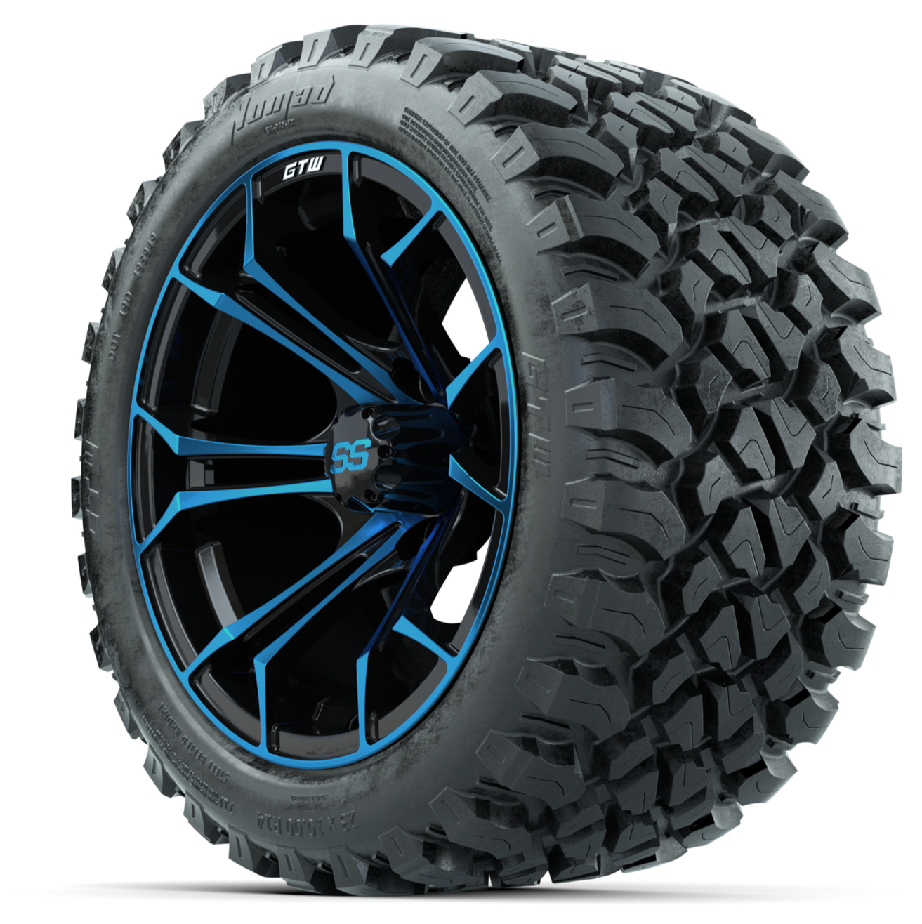 15-Inch GTW Spyder Blue and Black Wheels with GTW Nomad Off Road Tires (Set of 4)