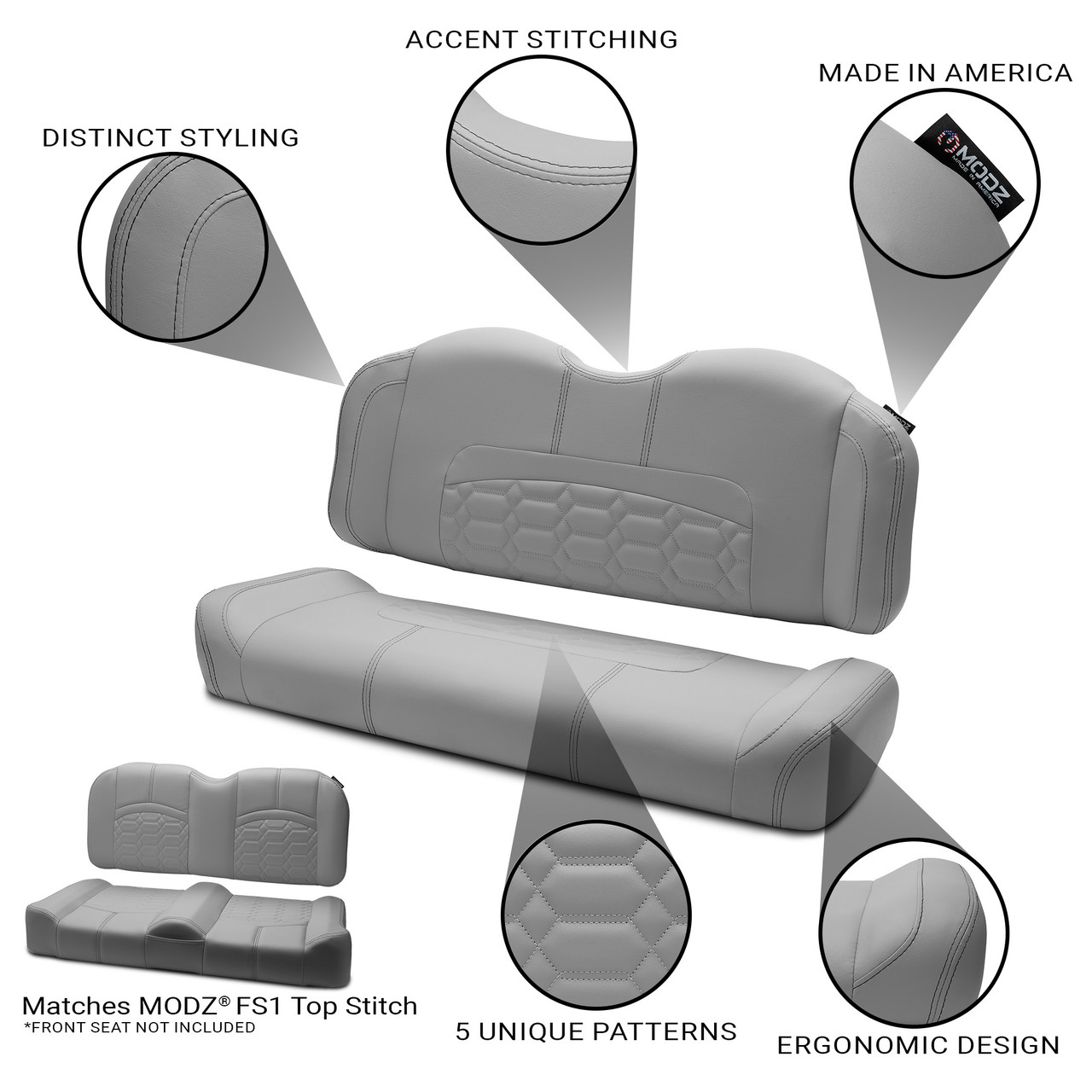 MODZ® RSC1 Top Stitch Rear Seat Cushion - Gray