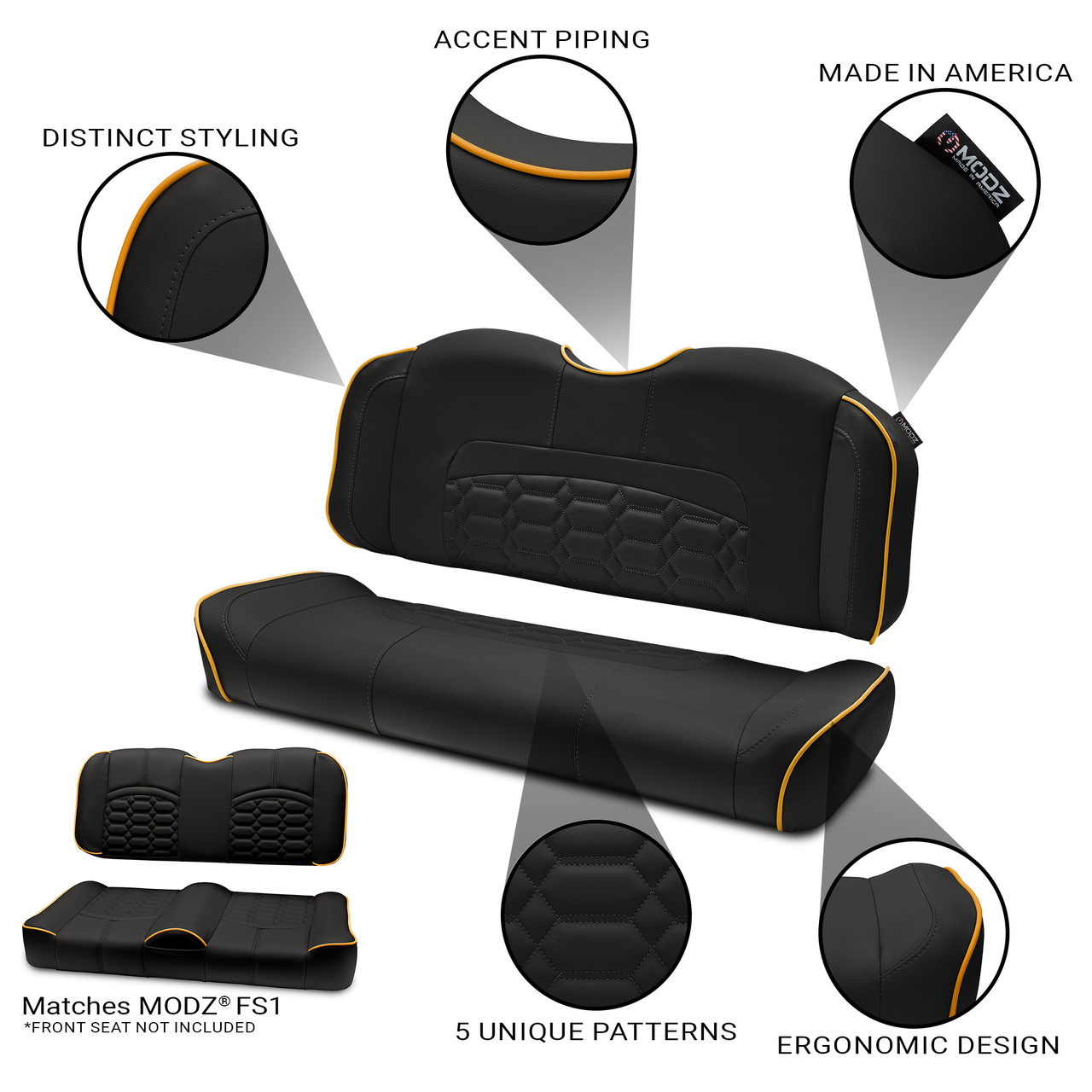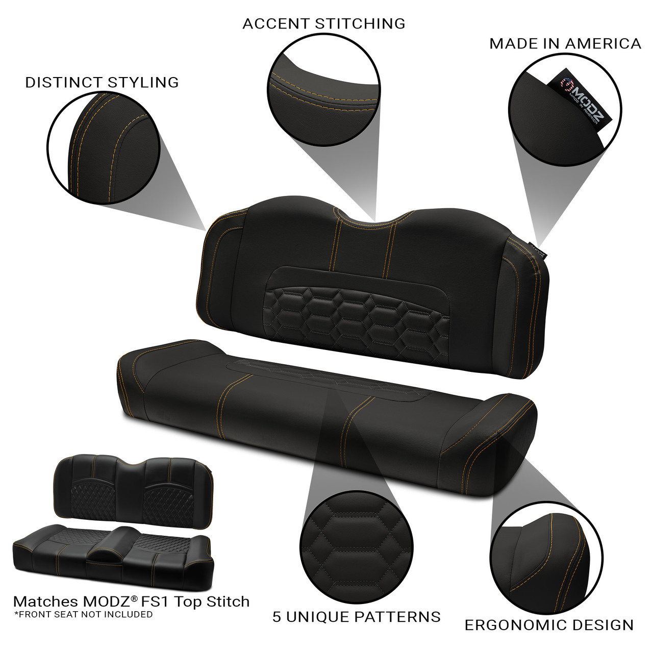MODZ® RSC1 Top Stitch Rear Seat Cushion - Black